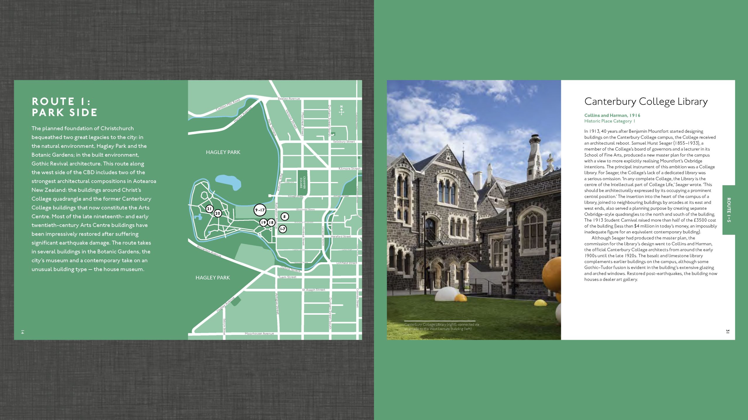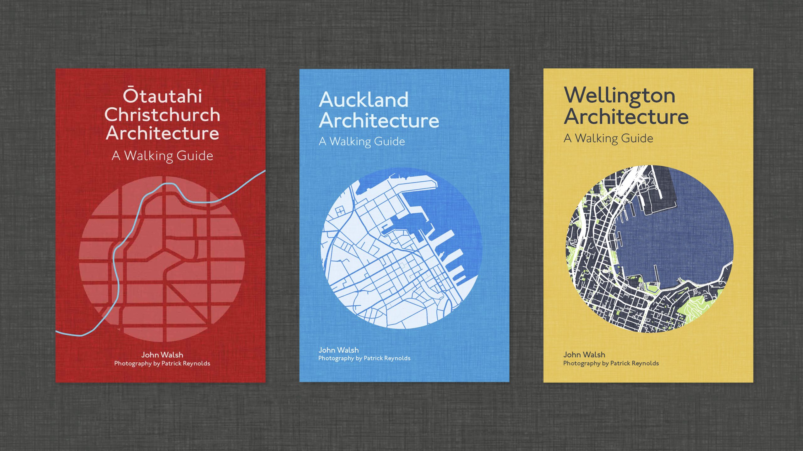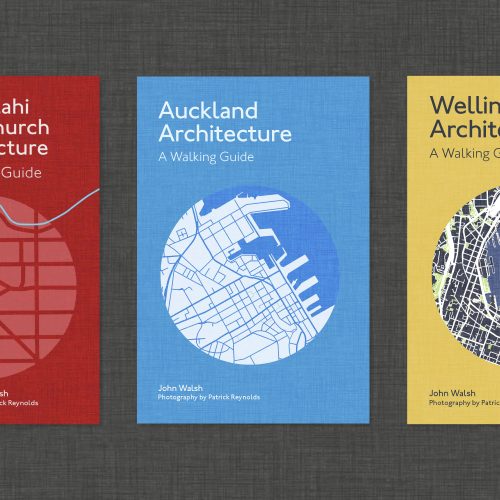 Design, illustration and production of a series of architectural walking guides around the motu for Massey University Press.